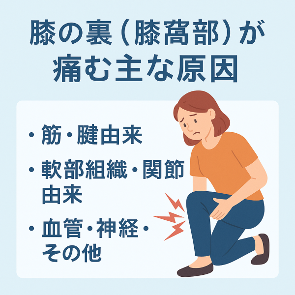 また、靭帯損傷や関節包の炎症によっても膝裏に違和感や痛みが広がる場合があります。これらの原因は、膝関節への繰り返しの負荷や、スポーツ・転倒などによる軽い損傷から生じることが多いとされています。