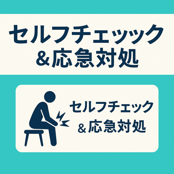 セルフチェック項目(痛む時の動き、腫れ・熱感・しびれ有無、片側か両側か)