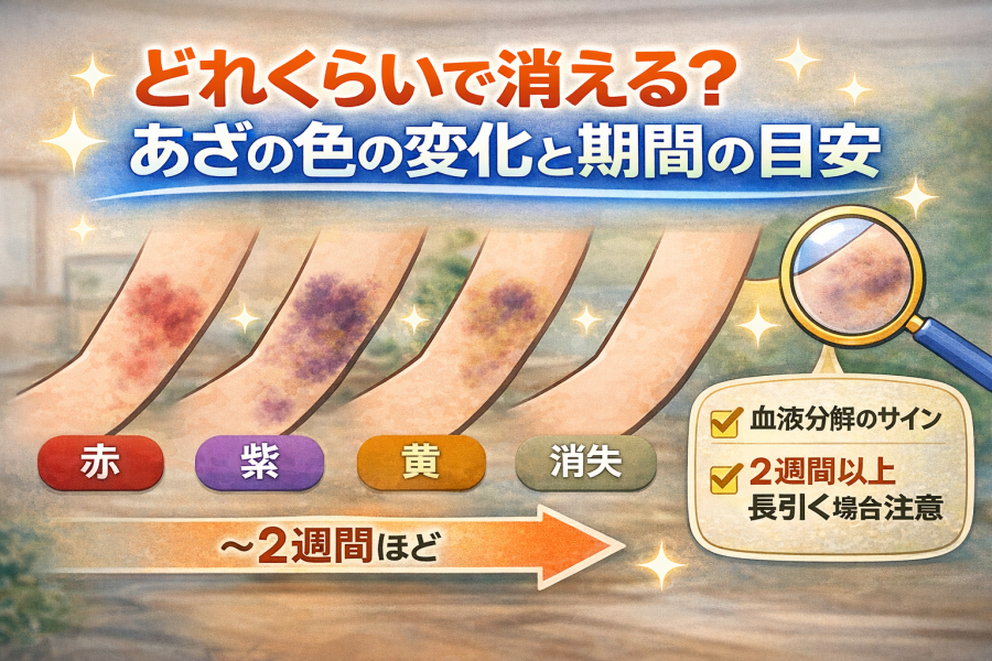 日常の過ごし方も、あざの経過に影響すると言われています。「なかなか消えないな」と感じるときほど、生活の中の小さな刺激を見直してみましょう。