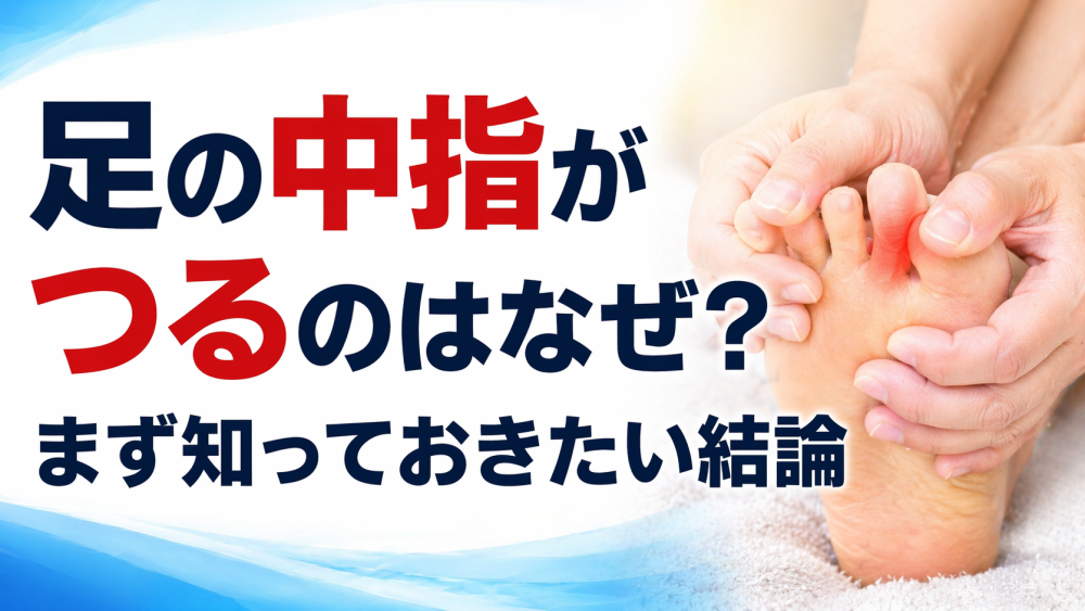足の中指がつる原因は筋肉疲労だけではありません。こむら返り・神経・血流・栄養不足などの違いを分かりやすく解説し、今すぐできる対処法・やってはいけないNG行動・危険サイン・受診の目安まで専門的にまとめました。