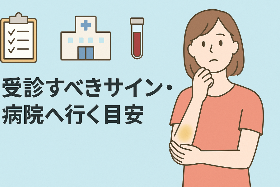 #身に覚えのないあざ #あざが消えない #血液や肝臓のサイン #検査と相談の目安 #皮膚科血液内科
