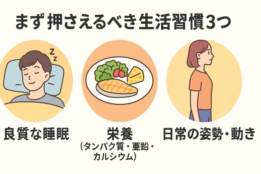 次に押さえたいのが、食事や栄養の質です。「身長を伸ばす方法 ストレッチ」を実践する中で、骨や筋肉に関わる栄養素を補うことは、ストレッチの効果を支える要素になります。たとえば、タンパク質は骨・筋肉・軟骨の材料として重要だと言われています。machino119.com+2ロート製薬オンラインショップ+2