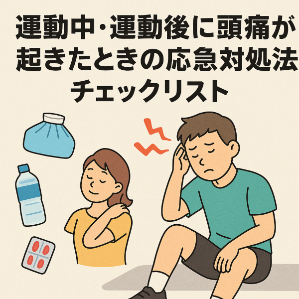 ChatGPT Image 2025年10月21日 13_32_45「運動していたら急に頭がズキッとした…」そんなとき、つい「少し我慢すれば大丈夫」と思って続けてしまう人もいますよね。でも、頭痛が出たときは体からのサインかもしれません。ここでは、運動中・運動後に頭痛が起きたときにすぐできる対処法を、段階的にチェックできる形でまとめました。