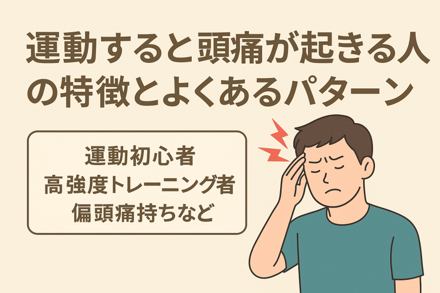 ChatGPT Image 2025年10月21日 13_32_02「運動すると頭が痛くなる…」そんな経験をしたことはありませんか?実は、運動中や運動後に頭痛を感じる人は少なくなく、特定の条件が重なると起きやすいと言われています。ここでは、どんな人に起こりやすいのか、どんなタイミングで痛みが出やすいのかをわかりやすく整理していきます。
