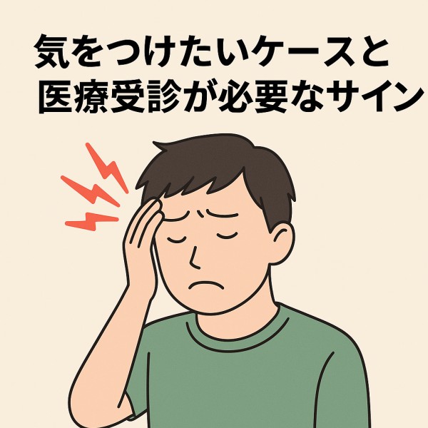 ChatGPT Image 2025年10月21日 13_33_05運動による頭痛は多くの場合、血流や筋肉の緊張といった一過性の要因で起こると言われています。とはいえ、中には注意が必要なケースもあります。ここでは、**「放置してはいけない頭痛」や「医療機関で検査を受けたほうが良いサイン」**について整理します。少しでも違和感を覚えたら、無理をせず専門家に相談することが大切です。