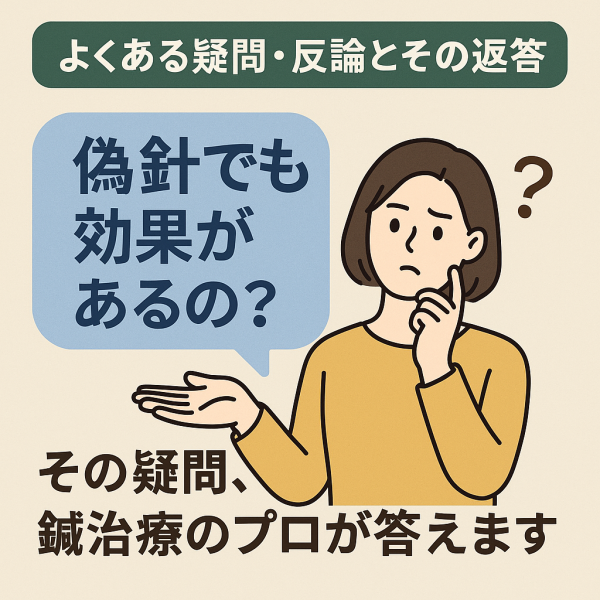 「偽針(プラセボ針)でも効果が出るのでは?」という指摘は、針治療に関する代表的な議論のひとつです。実際、一部の臨床試験では「偽針群」でも症状の改善が見られることが報告されています。ただし、これは“針そのものが無意味”ということではなく、「施術を受けることによる心理的安心感」「リラックス反応」「神経生理的な微小刺激」など、複合的な要因が影響していると考えられています。つまり、針の物理的な刺激と、受け手の脳や神経の反応が相互に関わっていると解釈するのが妥当だと言われています。