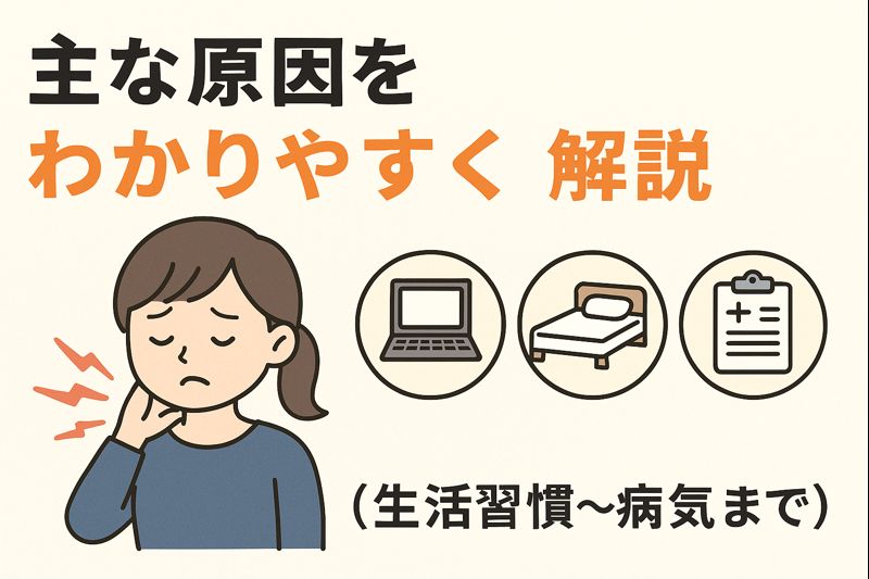 首が回らない症状の原因と対処法をわかりやすく解説。寝違え・姿勢不良・筋肉のこり・病気の可能性などを項目別に紹介し、セルフチェックと改善ストレッチまで丁寧に説明します。