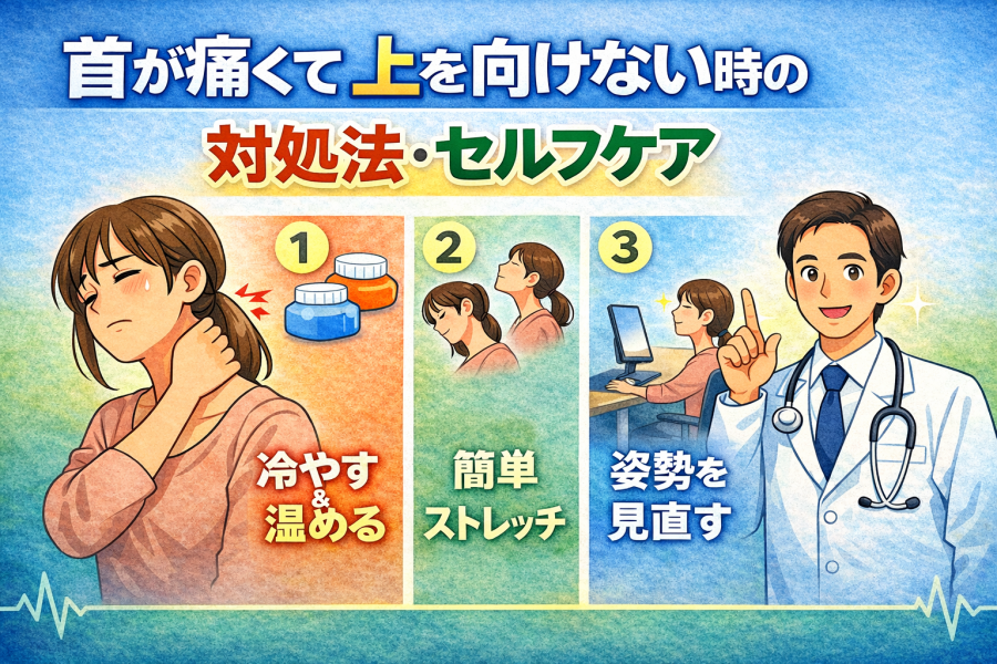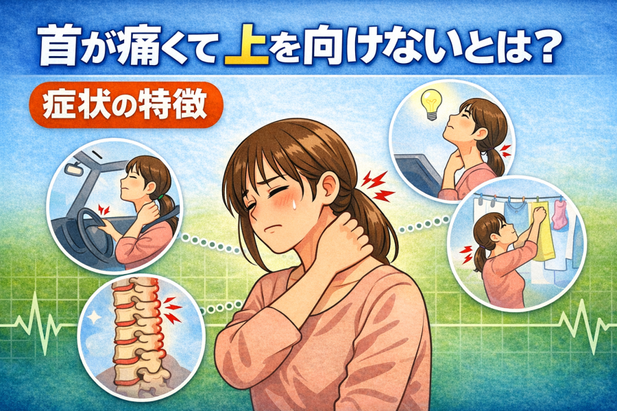 首が痛くて上を向けない原因と対処法を専門家監修で丁寧に解説。寝違え・筋緊張・ストレートネック・頚椎症などの背景から、自宅でできるセルフケアや改善のコツ、受診の目安までわかりやすく紹介します。