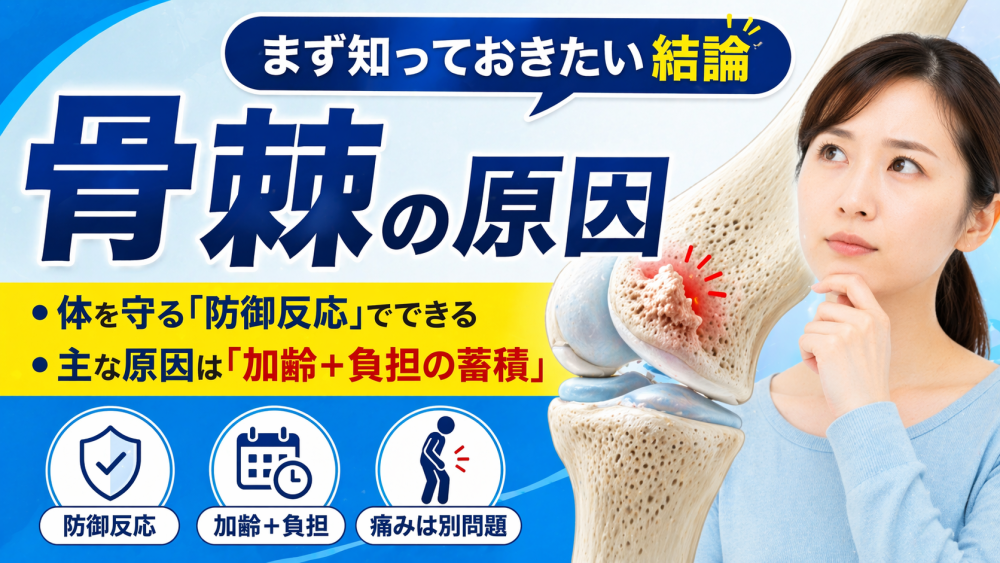 つまり骨棘は、単なる異常というよりも、体が適応しようとした結果のひとつとして捉えられることが多いです。まずはこの前提を理解しておくことが重要です。