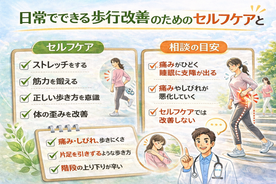 日常でできる歩行改善のためのセルフケアと相談の目安